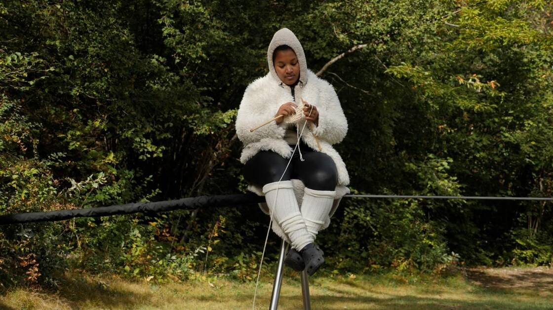 À la croisée des formes, dans Nez Noir, elle tisse une écriture performative, circassienne et textuelle. Anecdotes singulières et faits historiques se retrouvent entremêlés dans une cartographie personnelle et originale. En équilibre sur son fil de fer, elle tricote et démêle les fils de son identité et du lien qu’elle entretient avec la région qui abrite les fameux moutons nez noirs.